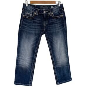 Miss Me Jeans Women 27 Blue Capris Western Rodeo Embroidered Denim Cowgirl