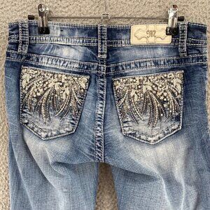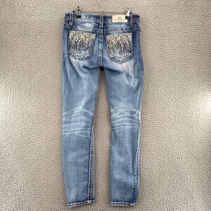 Miss Me Jeans Women 27 Blue Signature Skinny Bling Embroidery Distressed Stretch