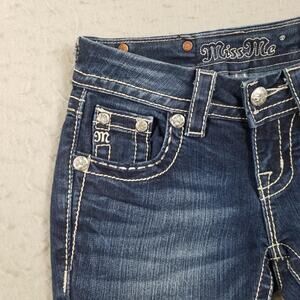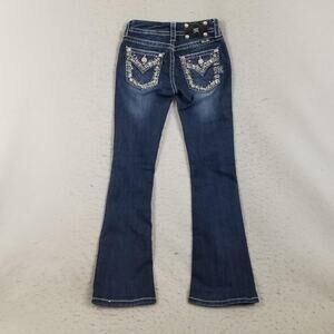 Miss Me Jeans Womens 24 Dark Wash Signature Rise Bootcut Embellished JE8076BR