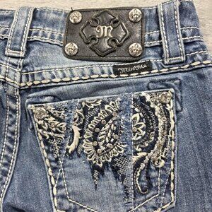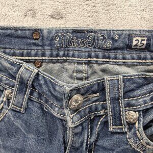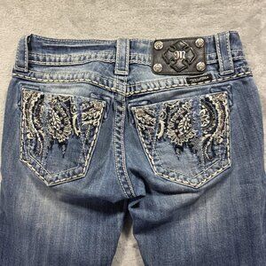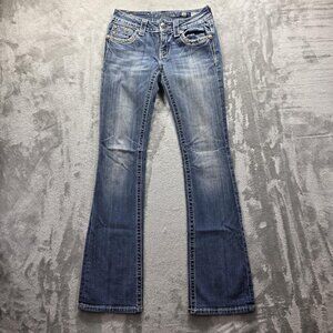 Miss Me Jeans Womens 25 Blue Bootcut Embroidered Rhinestone Bling Stretch Denim