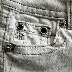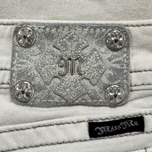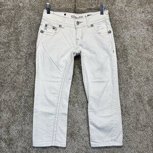 Miss Me Jeans Womens 25 White Capri Low Rise Flap Pockets Stretch Wings Metallic