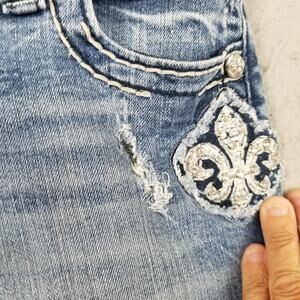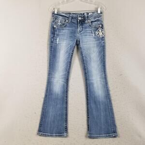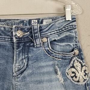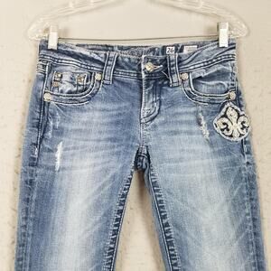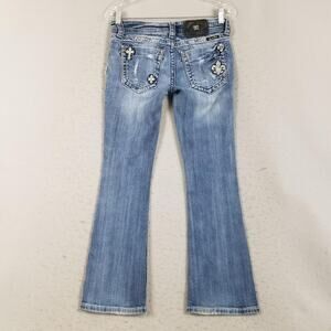 Miss Me Jeans Womens 26 Blue Boot Cut Rhinestone Fleur-de-Lis Bling JE5369B6N