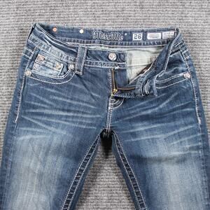 Miss Me Jeans Womens 26 Blue Signature Straight Embellished Flap Pockets