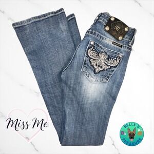 Keywords: Miss Me jeans, womens jeans, size 26, boot cut jeans, low rise jeans, embellished jeans, rhinestone jeans, denim jeans, blue jeans, designer jeans, western jeans, y2k jeans, casual jeans, stylish jeans