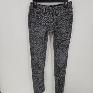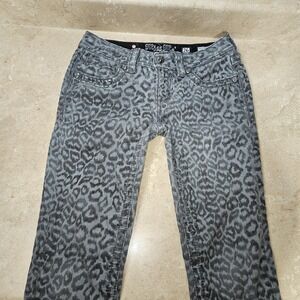 Miss Me Jeans Womens 26 Gray Leopard Print Signature-Rise Skinny Embellished