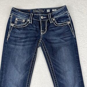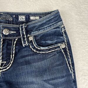 Miss Me Jeans Womens 26x28 Blue Wash Low Rise Skinny Split Hem Rhinestone Denim