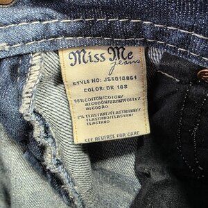 Details: Five-pocket design with front coin pocket, zip fly with logo button closure, belt loops, decorative metal hardware, Miss Me logo embroidery and leather logo patch at back waistband, bootcut leg, stretch denim for comfort.