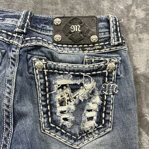 Miss Me Jeans Womens 27 Blue Capri JE5152P10 Embroidered Distressed Rhinestones
