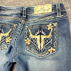 Miss Me Jeans Womens 27 Blue Chloe Boot M3506B Bull Western Embroidered