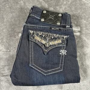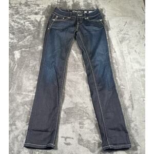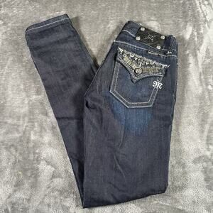 Miss Me Jeans Women’s 27 Blue Skinny JP46565 Sequence Embroidered Flap Pockets