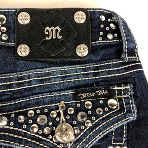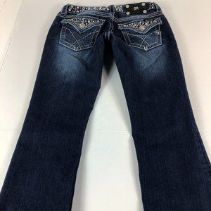 Miss Me Jeans Women's 27 Boot Cut Blue Stretch Denim Embellished Flap Pocket