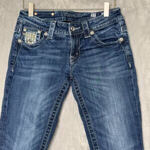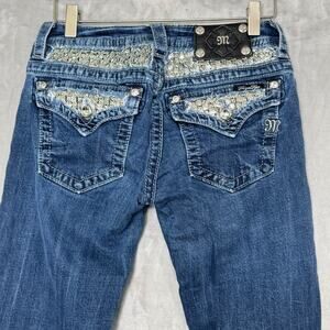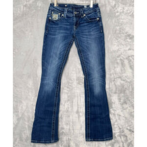 Miss Me Jeans Womens 27 Signature Rise Bootcut Dark Wash Silver Sequin Stitching