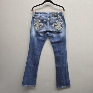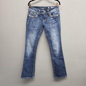 Miss Me Jeans Womens 28 Blue Signature Slim Boot Bootcut Fleur-de-Lis Bling