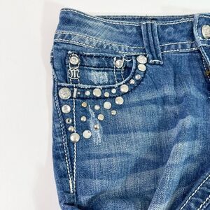 Miss Me Jeans Womens 28 Blue Dark Wash Skinny Studded Whiskering Denim