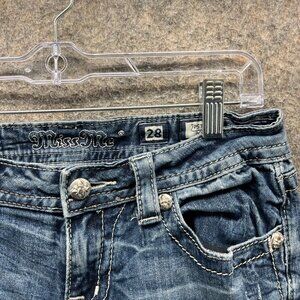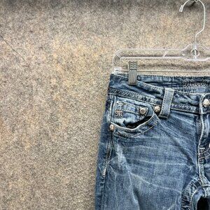 Miss Me Jeans Womens 28 Bootcut Blue Denim Fleur De Lis Embroidered Pockets