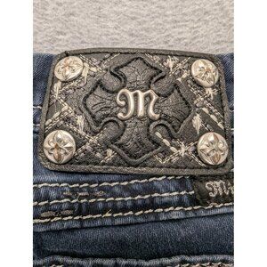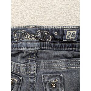 Miss Me Jeans Womens 28 Dark Wash Mid Rise Skinny Embellished Contrast Stitching
