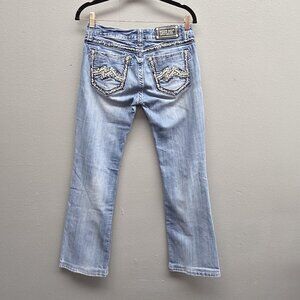 Miss Me Jeans Womens 28 Light Wash Bootcut Embroidered Back Distressed JE1205BL
