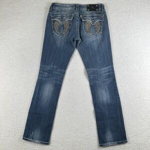 Miss Me Jeans Womens 28 Straight Leg Embellished Flap Pockets Y2K Angel Wings