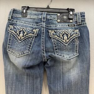 Miss Me Jeans Womens 29 (8) Blue Boot Cut Embellished Pockets Western Blingy