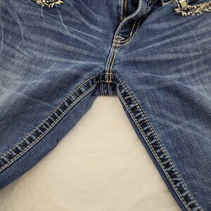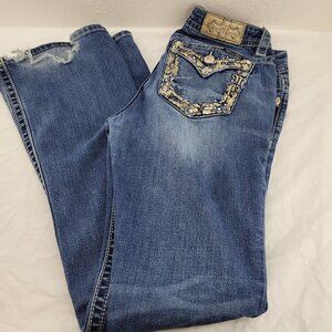 Miss Me Jeans Women's 29 Mid-Rise Boot Lots of Hem Wear see pics
