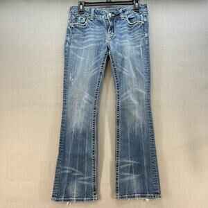 Miss Me Jeans Women's 29x29.5 (8) Dark Blue Easy Skinny Sequins Flower Bling