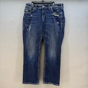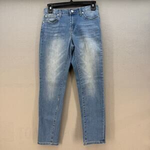 Miss Me Women’s Denim Jeans. Tagged size 29 (8). Blue in color, dark denim wash. Embroidered back pockets with a sequin and embroidered floral feathery waterfall. These Miss Me women's jeans feature a five pocket design, embellished pockets, a skinny leg and a mid rise fit. Style number E3180ES3S. In excellent preowned condition with minimal signs of wear - EUC.