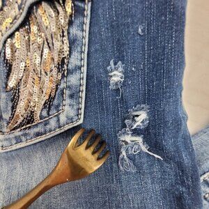 Miss Me Jeans Women's 33 Blue Chloe Boot Cut Damage on right hip see pics