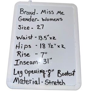 Fit: Miss Me jeans often use a blend of cotton and stretch fabrics for comfort and ease of movement. The fit, such as bootcut or skinny, varies depending on the specific style.