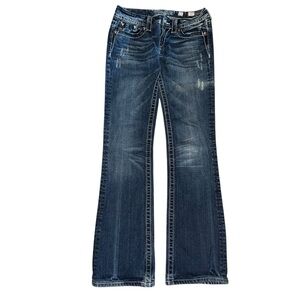 Miss Me Jeans Women’s Fleur De Lis SZ 27 Blue Distressed Boot Whiskering