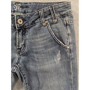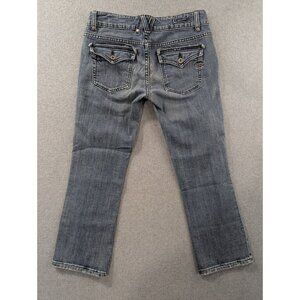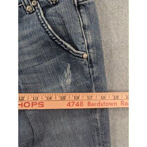 Miss Me Jeans Womens SZ 29 Blue Distressed Classic Cropped Flap Pocket Whiskers