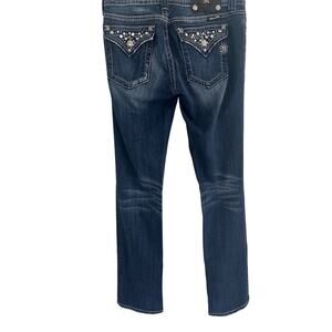 Miss Me jeans women, SZ 29 denim, straight-leg blue jeans, flap pocket jeans, embellished denim jeans, bling pocket jeans, casual chic jeans, designer women’s jeans, JP5141ST Miss Me, stylish everyday denim