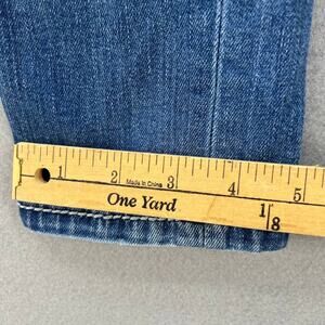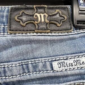Miss Me Women’s Signature skinny Jeans. Tagged size 26 (2). Blue in color with a medium denim wash. Decorated with a feather design. In excellent preowned condition with minimal signs of wear. These skinny jeans have heavily embroidered back pockets with multicolor thread and the signature Miss Me buttons and Rhinestones. The cotton and elastane blend ensures these jeans have stretch, and will fit how desired. Style code JP7751S.