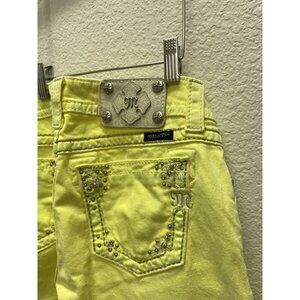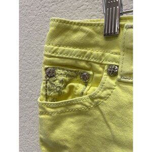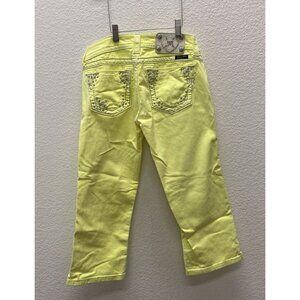 Miss Me Jeans Womens Size 27 Capri Neon Yellow Beaded Embroidered.