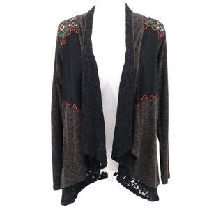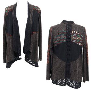 Miss Me Knit Cardigan Womens M Black Boho Bohemian Southwestern Dark Feminine
