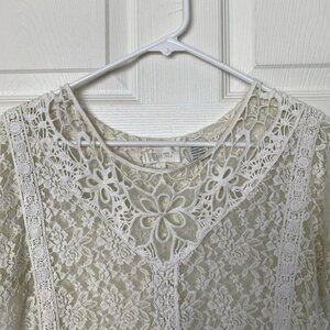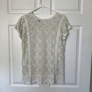 Miss Me Lace Crochet Size Small Top Ivory White Short Sleeve Blouse