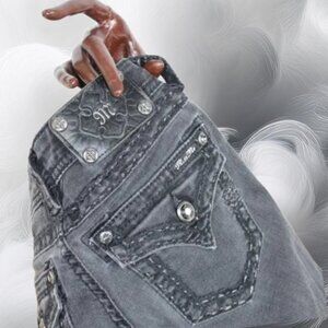 Signature Miss Me tagging, accents, and hardware