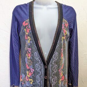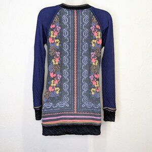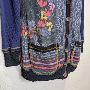 Miss Me Long Cardigan Womens M Floral Soft Patchwork Y2k Cotton Casual Sweater