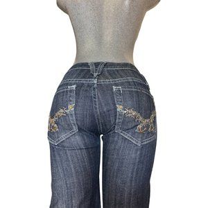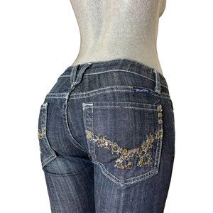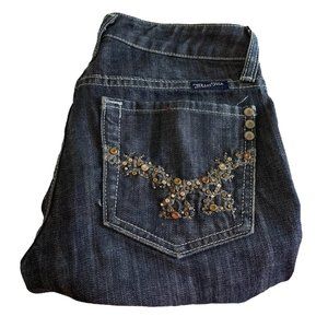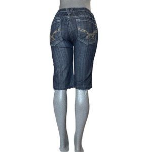 Miss Me Long Denim Shorts Womens Jeans Tag 27 Blue W29xL12 Studded Fringe Slim