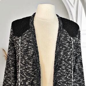 Miss Me Long Length Cardigan Sweater Jacket Sz S Black Tweed Cowboy Inspired Boh