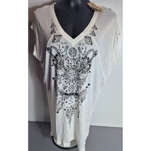 Miss Me MM Unplugged Womens Short Sleeve Bling Shirt M NEW NWT Ivory