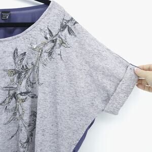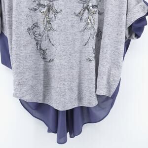 Miss Me Medium Boho Beaded Floral Periwinkle Romantic Top Chiffon Gathered Back