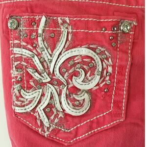 Miss Me Melon Fleur De Lis Jeans Size 26 Skinny Leather & Rhinestone Pockets