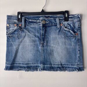 Miss Me Micro Mini Skirt Y2K Denim Jean Fringe Raw Hem 2000s Style JS3102 Large