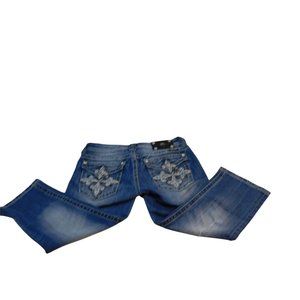 Miss Me Mid Rise Capri Jeans Womens Size 27 Distressed Embroidered Studded Denim