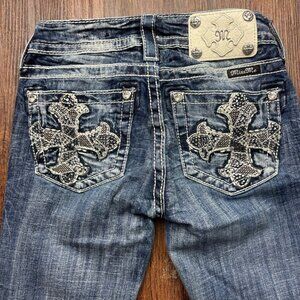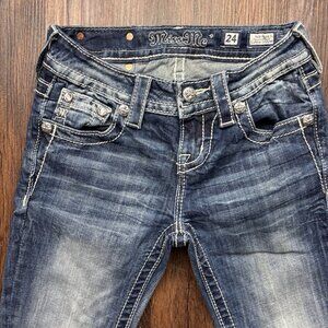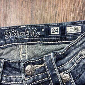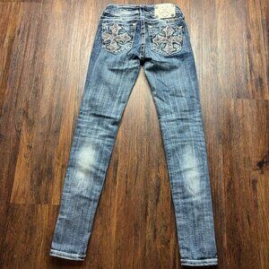 Miss Me Mid Rise Cuffed Skinny Jeans Cross Embroidered Medium Wash Size 24