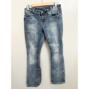 Miss Me Mid Rise Easy Boot Sz 29 Jeans 29x31 Medium Cross Bling Thick Stitch