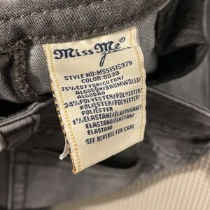 The Miss Me Mid Rise Skinny jeans in a size 26 feature a charcoal gray color with whiskers for added texture. This stylish pair of jeans is designed for women who appreciate a flattering skinny fit. With the iconic Miss Me branding, these jeans combine fashion and comfort for a versatile wardrobe staple.