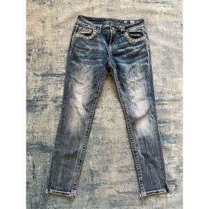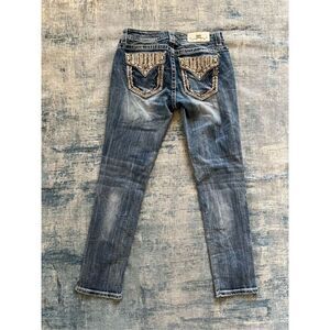 Miss Me Mid Rise Skinny Rhinestone Embroidered Embellished Jeans 28