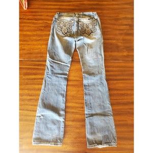 Miss Me Mid-Rise Boot Cut Women Size 27 Med Wash MW58458 Embellished Destressed