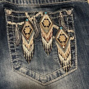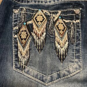 Miss Me Mid-Rise Straight Womens Denim Jeans Indian Feathers Size 34